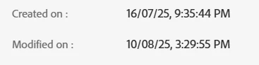 In the file list it shows Last modified: Aug 14, 5:18 AM (JST), but the file’s Properties show Last modified: Aug 10 (KST).
