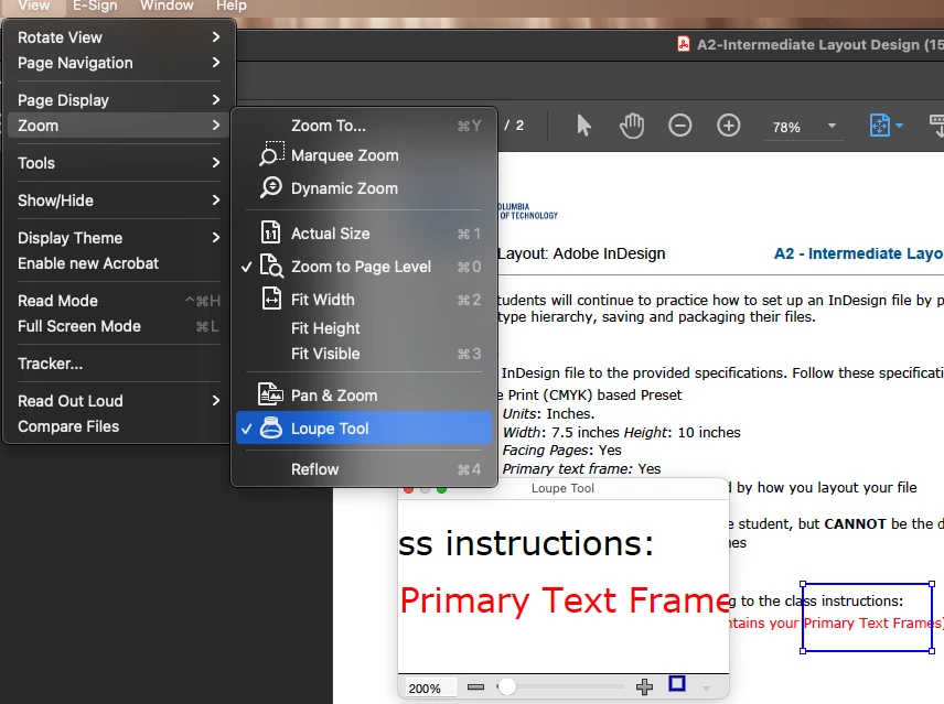 When I select the loupe tool, the blue rectangle appears above the document but the loupe tool window does not appear. I am using Adobe Acrobat Pro DC Version 2015.006.30527.