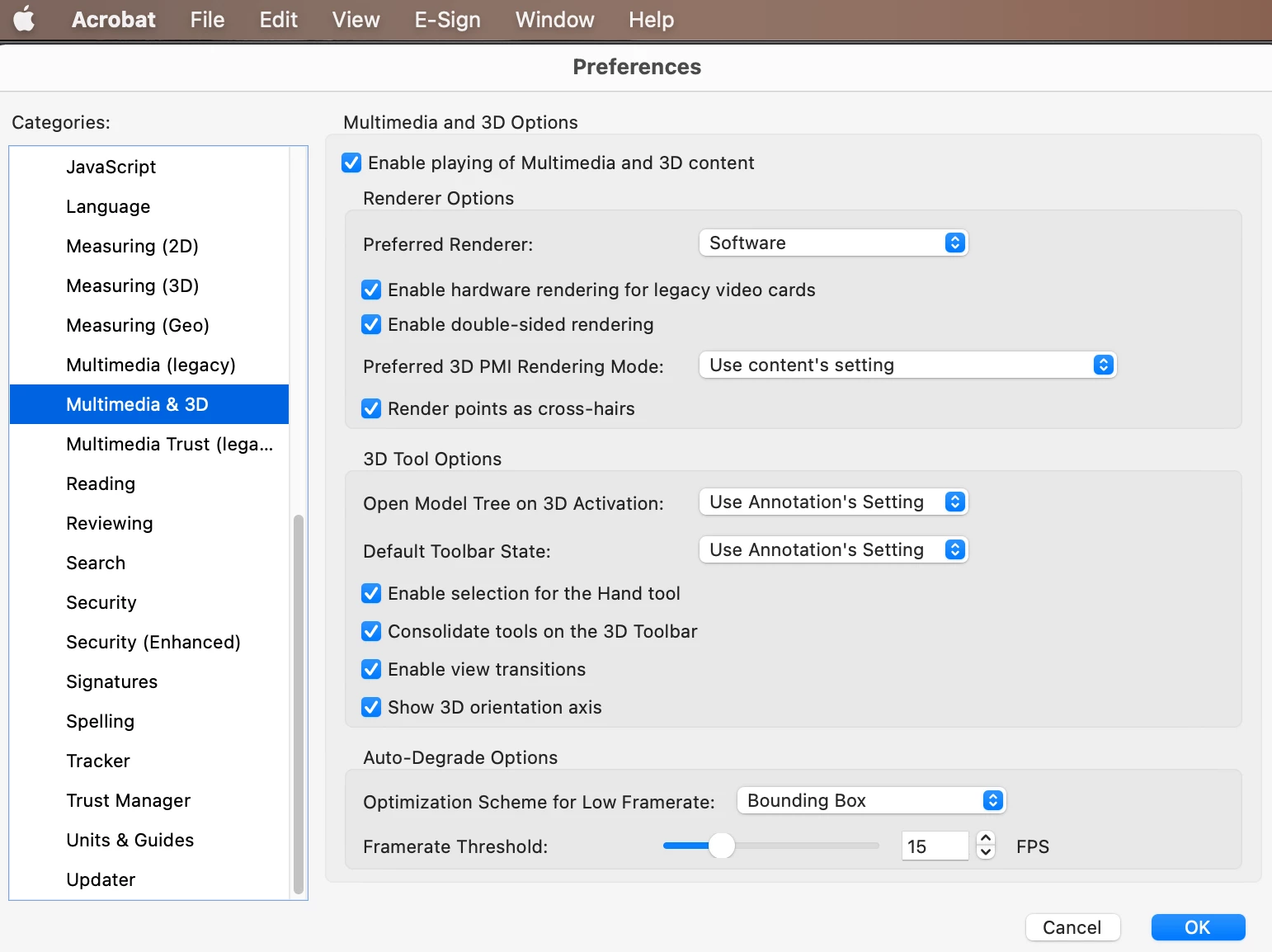 @pchrono Since you've specified that rebuilding the plugin isn't an option, I would try and revert to the classic interface of Acrobat. Go to the View menu at the top of your screen and select Disable new Acrobat. Restart Acrobat. This will revert the UI to the older, more stable version, which should fix the rendering issues with your plugin. As well, if you go to the Preferences, you can change the Use hardware rendering for legacy multimedia option.