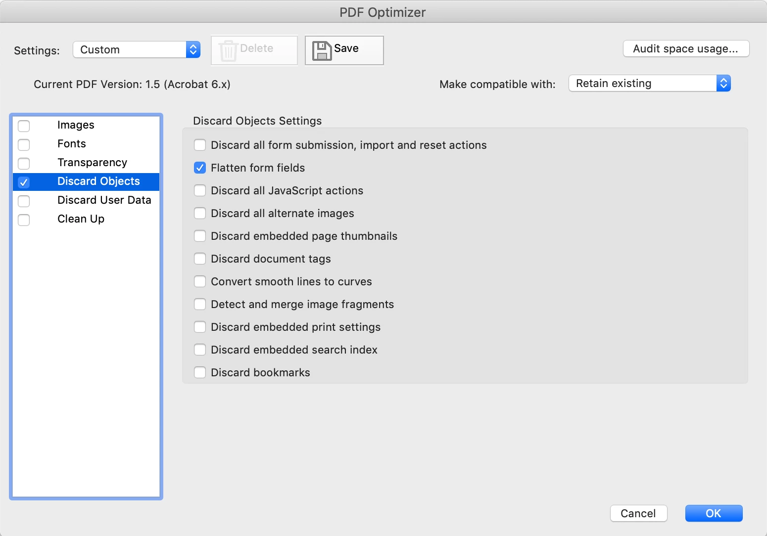 I've already seen the instructions on how to easily make all the pages of a merged PDF the same size. It's easy enough to do, basically: Print to Adobe PDF with "fit" (uncheck from "actual size") in print settings. The problem is that method doubles the size of the PDF, which makes it impossible to upload to most United States government or court systems (which cap their uploads to 35 MBs).