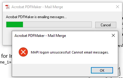 MAPI logon unsuccessful when using Acrobat PDFMaker to merge and email