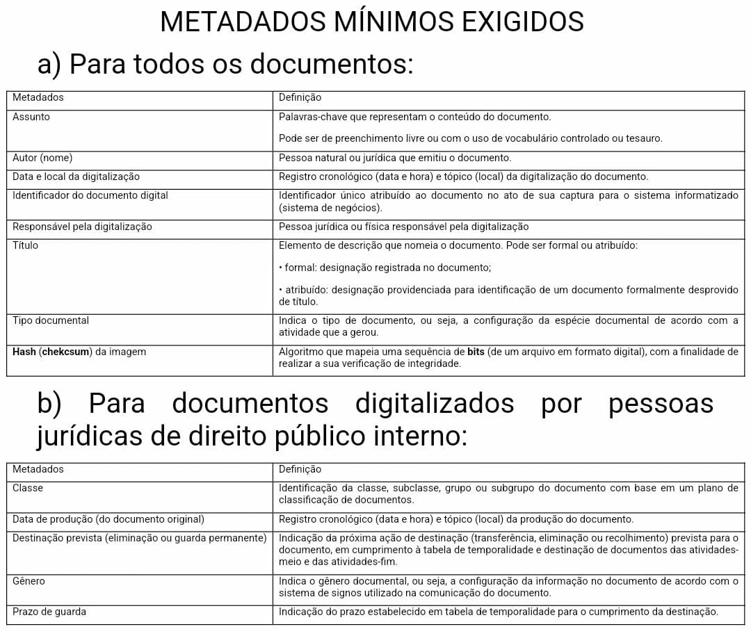 Estou colocando aqui alguns documentos abaixo que mostram quais são os Metadados obrigatorios para validação juridica.