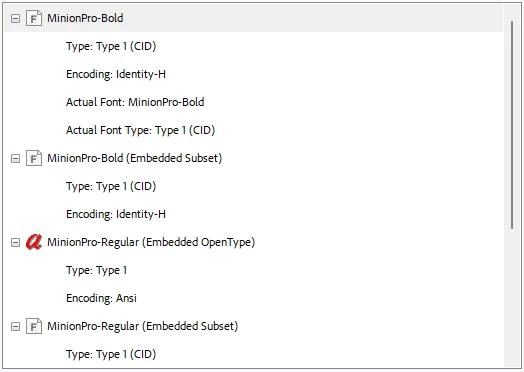 Minion Pro Regular and Minion Pro Bold sometimes not embedded in form