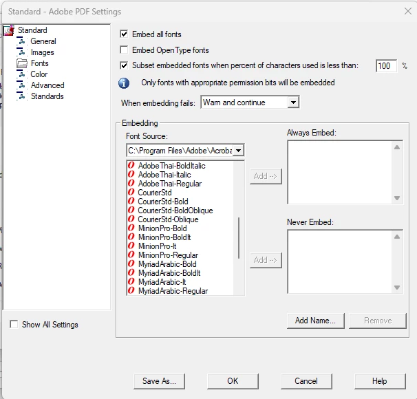 I've created a form and it has some font issues. I've made other forms that behave properly with the same font. I've been exploring options for what might be wrong, and I think it could be that some of the forms fonts are not showing as embedded. I used the default of Minion Pro. Is there a way to change these non-embedded fonts to embedded?