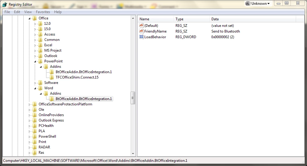 I look for solution online ans I was told to enable Add-in in Microsoft Word (I'm using 2007 version), so I tried but I got the message "The connected state of Office Add-ins registered in HKEY_LOCAL_MACHINE cannot be change"