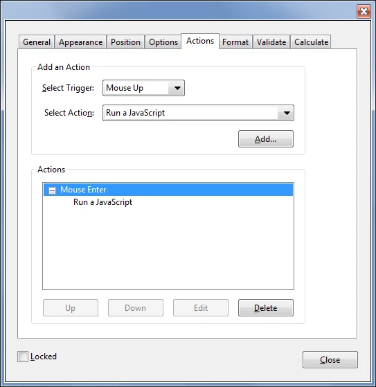 After I click OK to get out of the Java Script Editor, the trigger changes to Mouse Up.