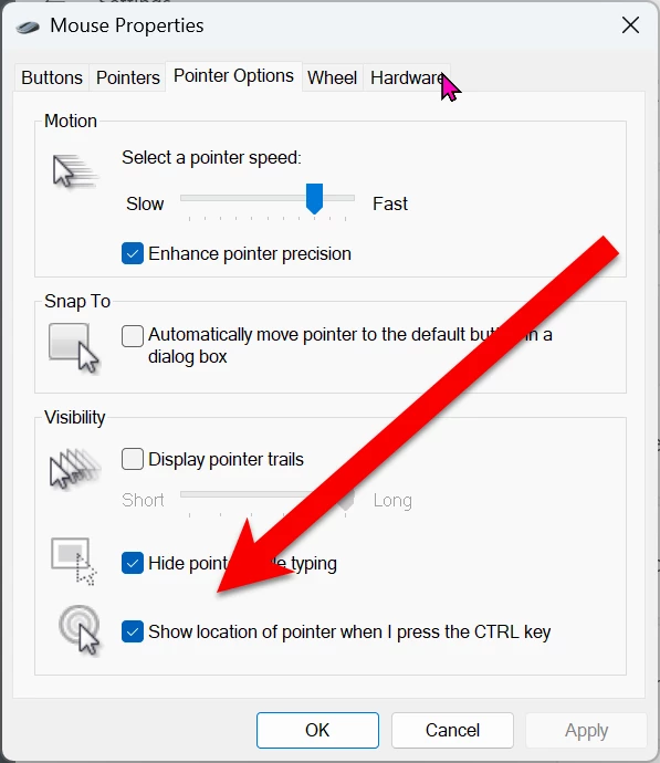 Mouse pointer direction