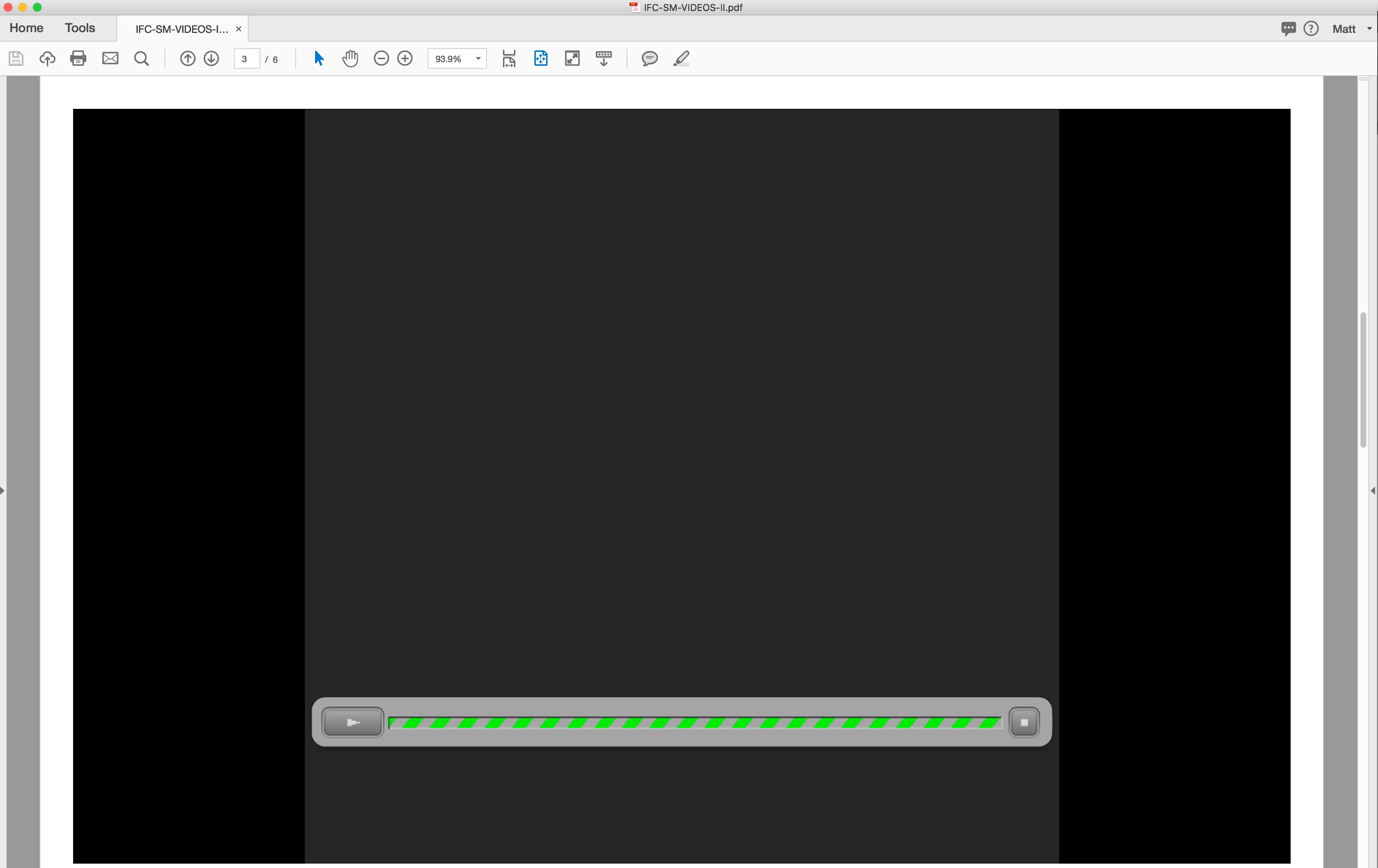 So I've got a REALLY SIMPLE PDF to show a client proof-of-concept for some social media content. One of the two videos in the presentation plays fine. No problem there. The other, however refuses to play. It's encoded the same way, I've switched out the file with other video files, and no matter what I do, it just sits there when opened in acrobat DC pro. It has that ugly loading bar just going at it like crazy, but it never actually plays the 11MB video file.