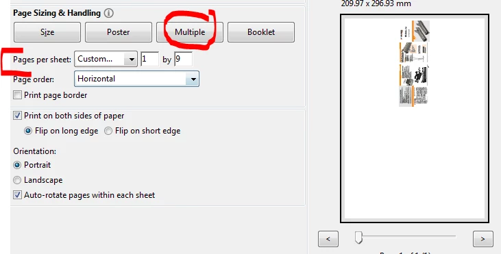 Is it possible to print multiple A4 pages (let's say 7) on a single customized plotter sheet (or a given A1 sheet) KEEPING the ACTUAL size of the original A4 pages?