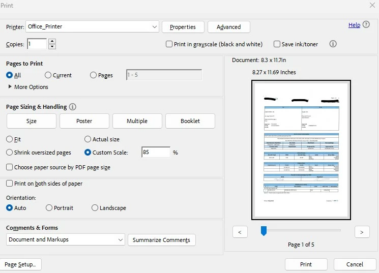 Is there a way to select multiple pdf files in a folder and go to Print section (Ctrl+P), change the scale of the files (reduce size by 15% for example) and then Print (or save as pdf)? Refer to the image attached. Thanks in advance!