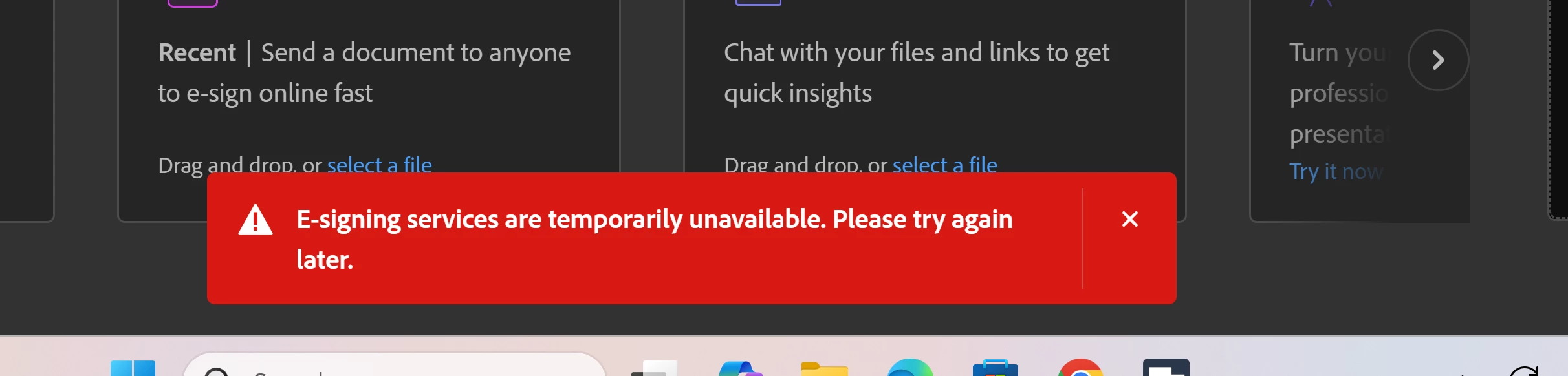 Could you please share more details about the issue? Are you trying to access the e-signature services via the Acrobat/Reader desktop app, or the Acrobat online services?
