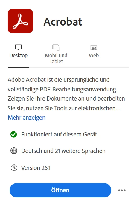 Hallo, Ich habe über meinen Adobe Account Acrobat Pro neu installiert.
