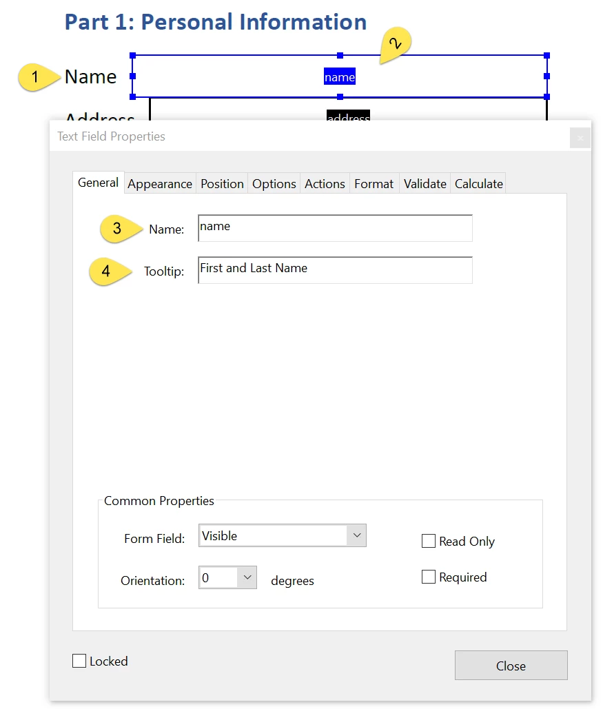 I have a form, where the form fields use the Label as he Name in properties and in the tooltip I use Enter your name.