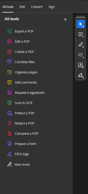 New Acrobat Reader tools pane