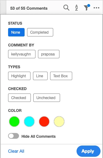 Hello. I just updated to the newest Acrobat version. I work with multiple Acrobat users and we comment back and forth in the pdfs. Now when I send them a clean pdf, it seems to be pulling comments that I check marked in previous versions and lists them in the comments as "Marked Set By [me]". There are literally hundreds of them in there and it makes it difficult to find and add new comments. They all need to be deleted every time. Is there a setting that can turn that off so it doesn't pull in all the "Marked as Set" comments? Thank you!