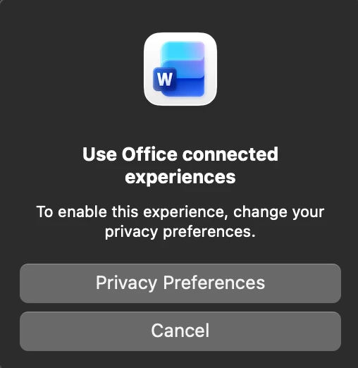 Acrobat Pro won't process the Word files and getting message saying that I have to change MS Word Privacy Preferences. It appears that Microsoft is not allowing the Word docs to be processed locally and forcing a user to batch on the MS website/cloud (Connected Experiences), which I DO NOT want.