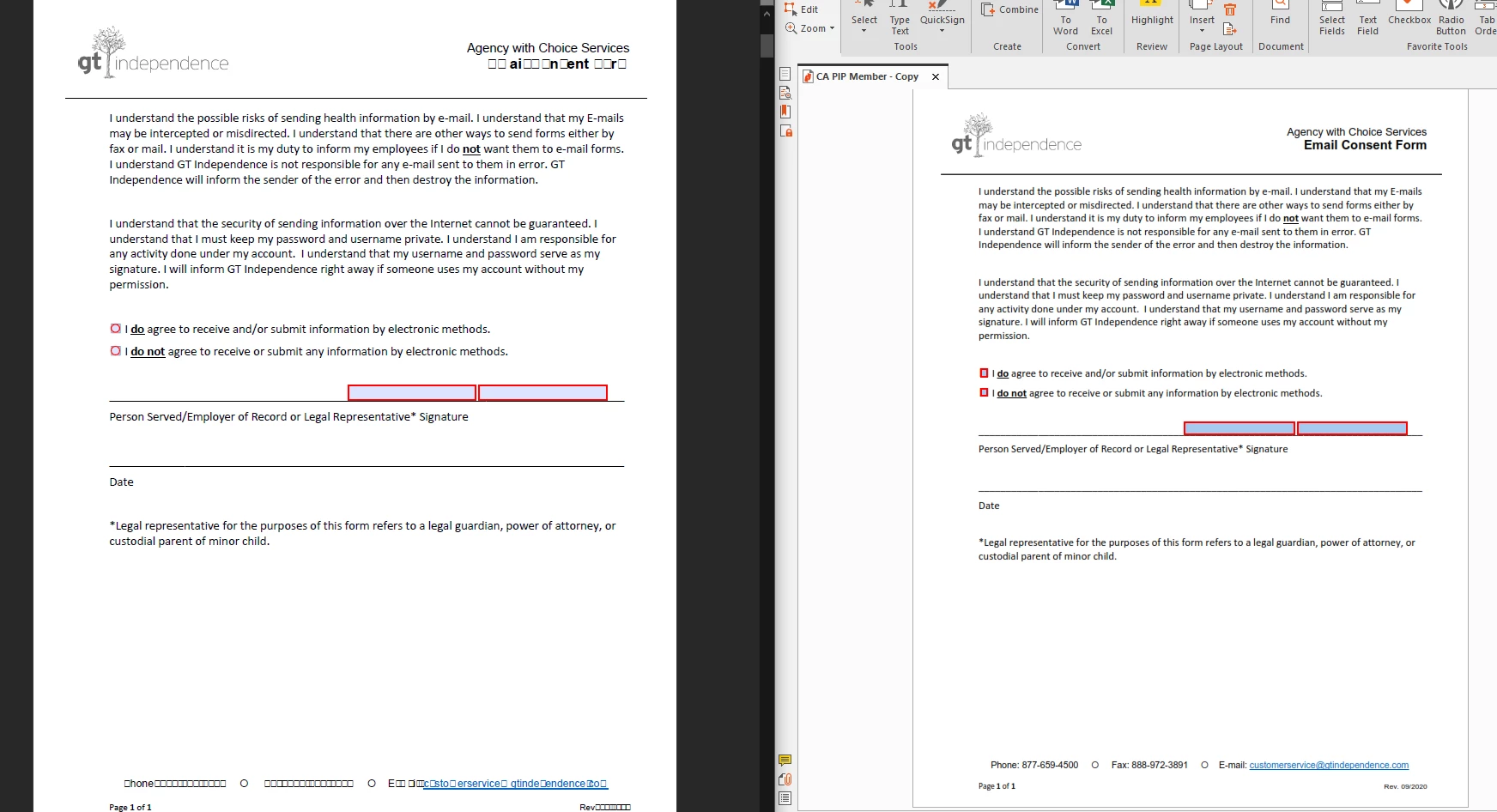 Please see attached a screenshot of the same page of one of the files I'm currently working on side by side in Acrobat (on the left) and Nitro (on the right) for an illustration of the character loss I'm talking about. I've also attached a copy of the file itself for reference.