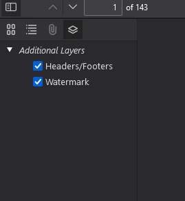 I have a pdf opening in firefox shows layers but it doesnt show the "additional layers" that include the watermark in acrobat. Firefox doesnt have the option to print override. I wanted to print without the watermrk