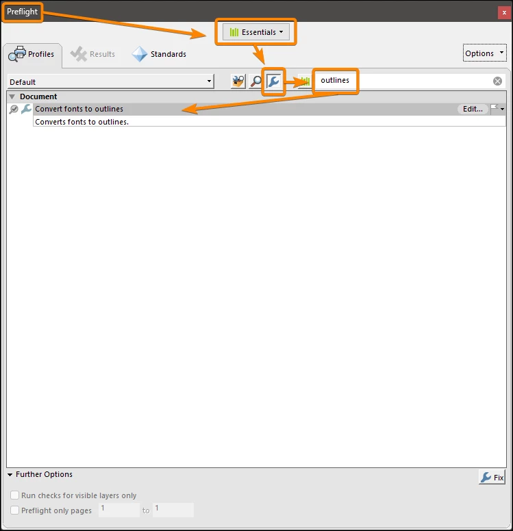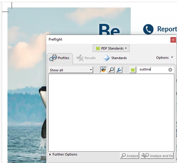 nothing shows in preflight when searching "outline" in Acrobat
