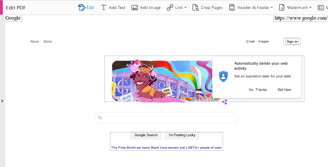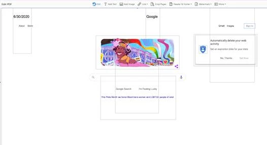 Hello! I'm an IT tech in a small company and today one of my users came to me with a strange print-to-PDF related problem. Using the Adobe PDF printer, she printed a weekly internal report from the new Chromium version of Microsoft Edge and found that when she went to edit the PDF in Acrobat Pro to add a date, strange boxes appeared all over the document. Since this report was company sensitive, I had her try again with Google(dot)com (so we could get something safe to share and to try a different site) and got similar results: