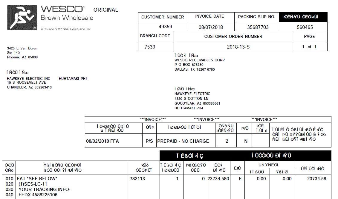 This is an invoice file sent to me and the odd character issue only happens with this one vendor?