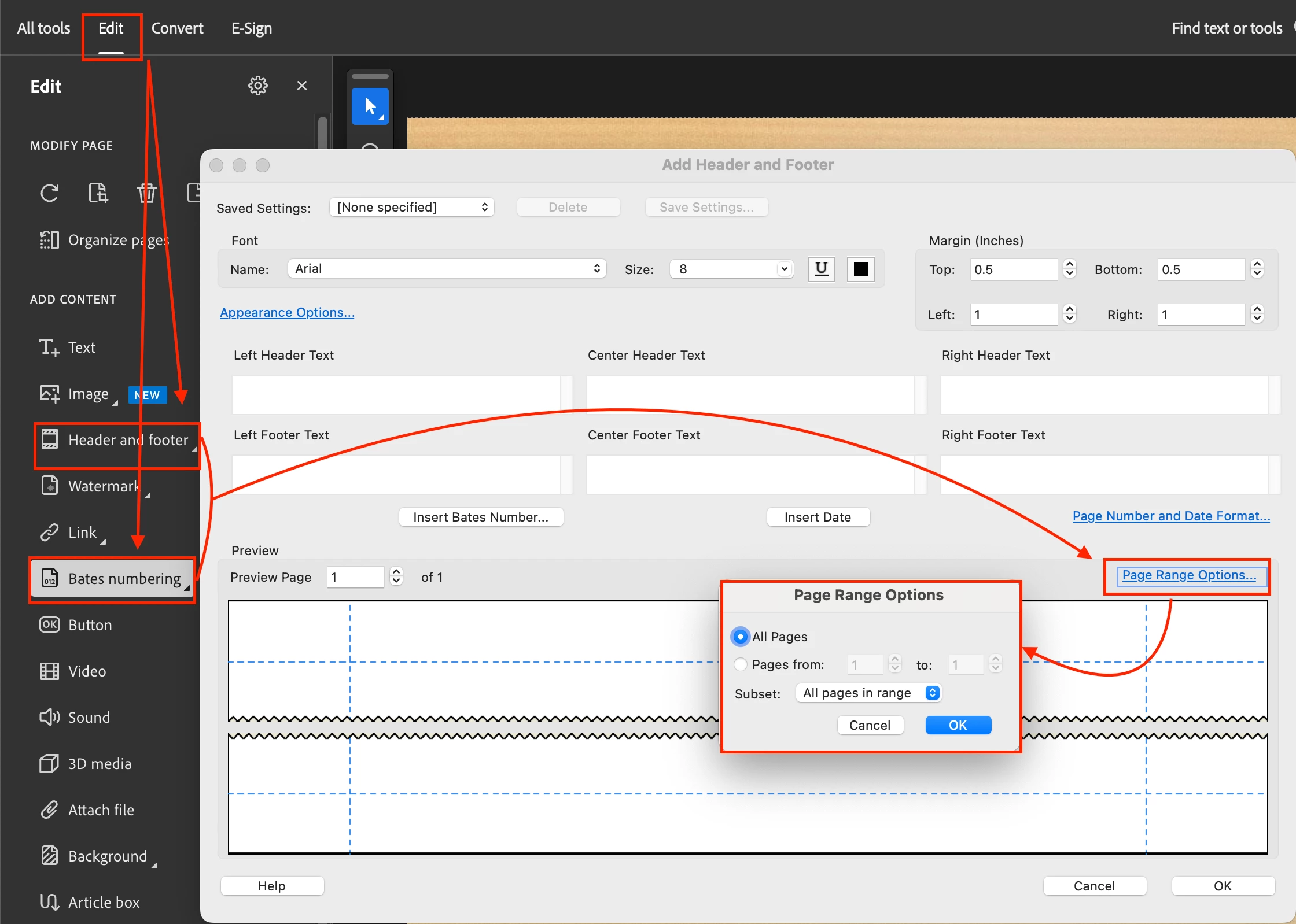 Page Numbers/Bates Numbering