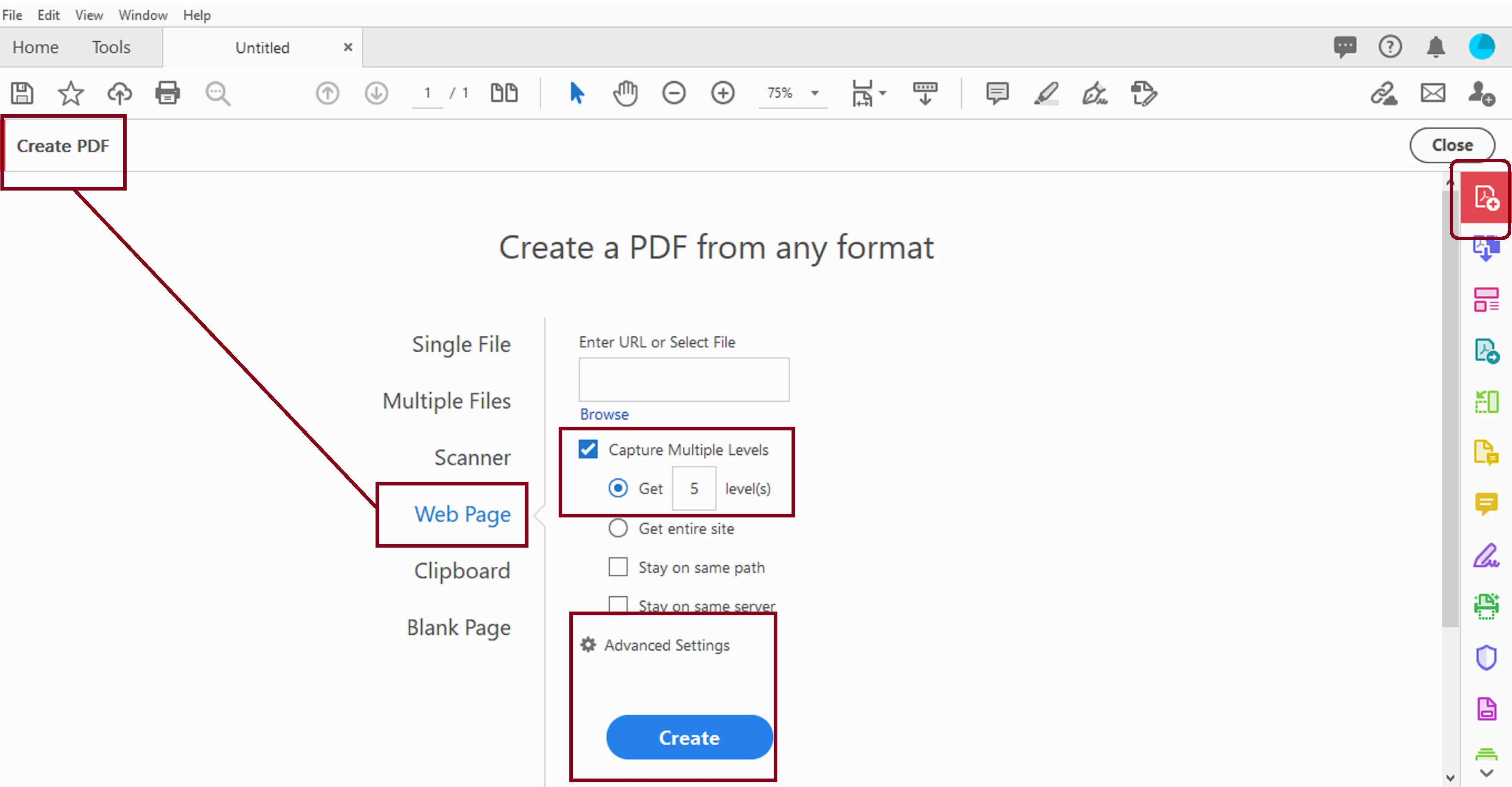 I want to convert a webpage to pdf using the Adobe Acrobat DC "file > create > PDF from webpage" function. I need to download the entire website using the "capture multiple levels" function set to 5 (it will be a pretty massive PDF). The problem is that the website requires a login at the beginning to gain access to your acccount.