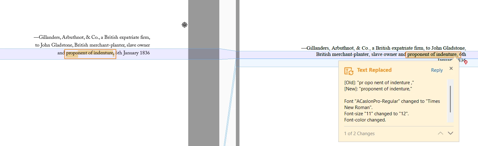 In the below report it shows space between the word “proponent” but visually there is no space between that word in PDFit shows as error any one know why it shows. I also copied that content from the file and paste in finder it not show any space refer the below screen shot.