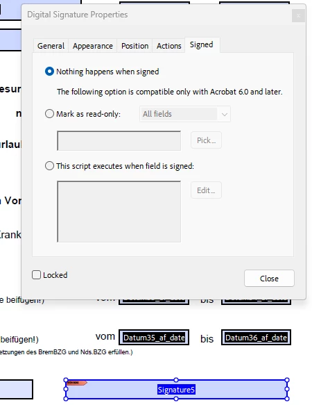 Führe ich die Unterschrift aus, kann ich es trotzdem inhaltlich noch ändern. Vor kurzem war es noch so, das ich nur noch Datums und Textfelder ändern konnte jedoch keine Felder wo ich ein X setzen kann.