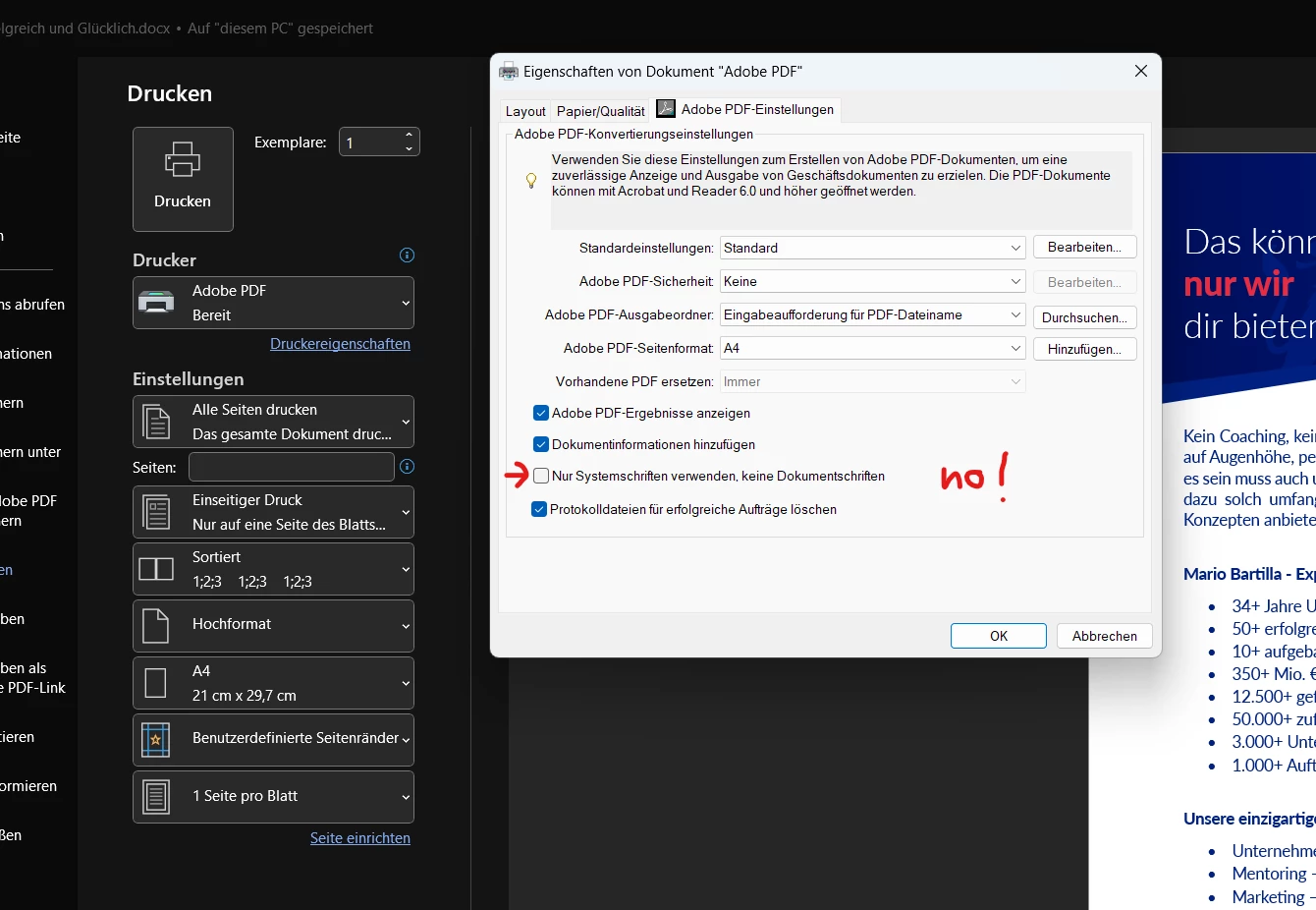 Turn of this checkbox in your printer context to prevent using system fonts only. After that it works for me.