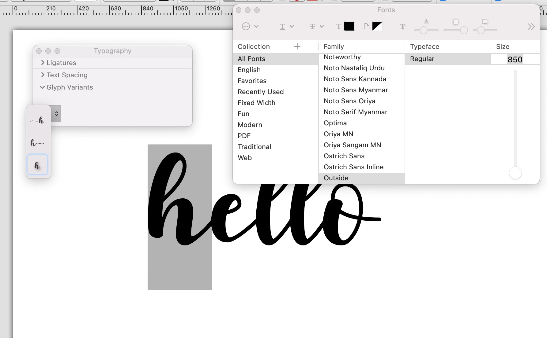 My question is, some of these fonts have a letter variation that has a swash glyph on the first and last letter, is there a script I could write to turn the first and last letter from the standard letter to a swash glyph variation of that letter?