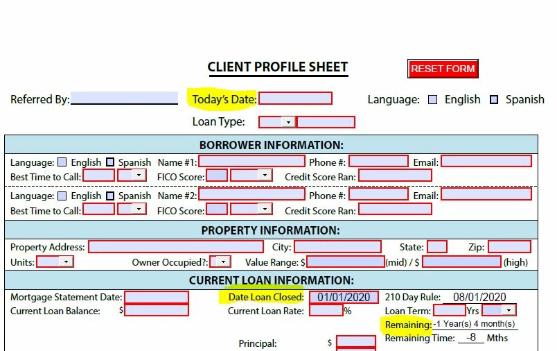 Current Date - (Date Loan Closed + # years in the contract).