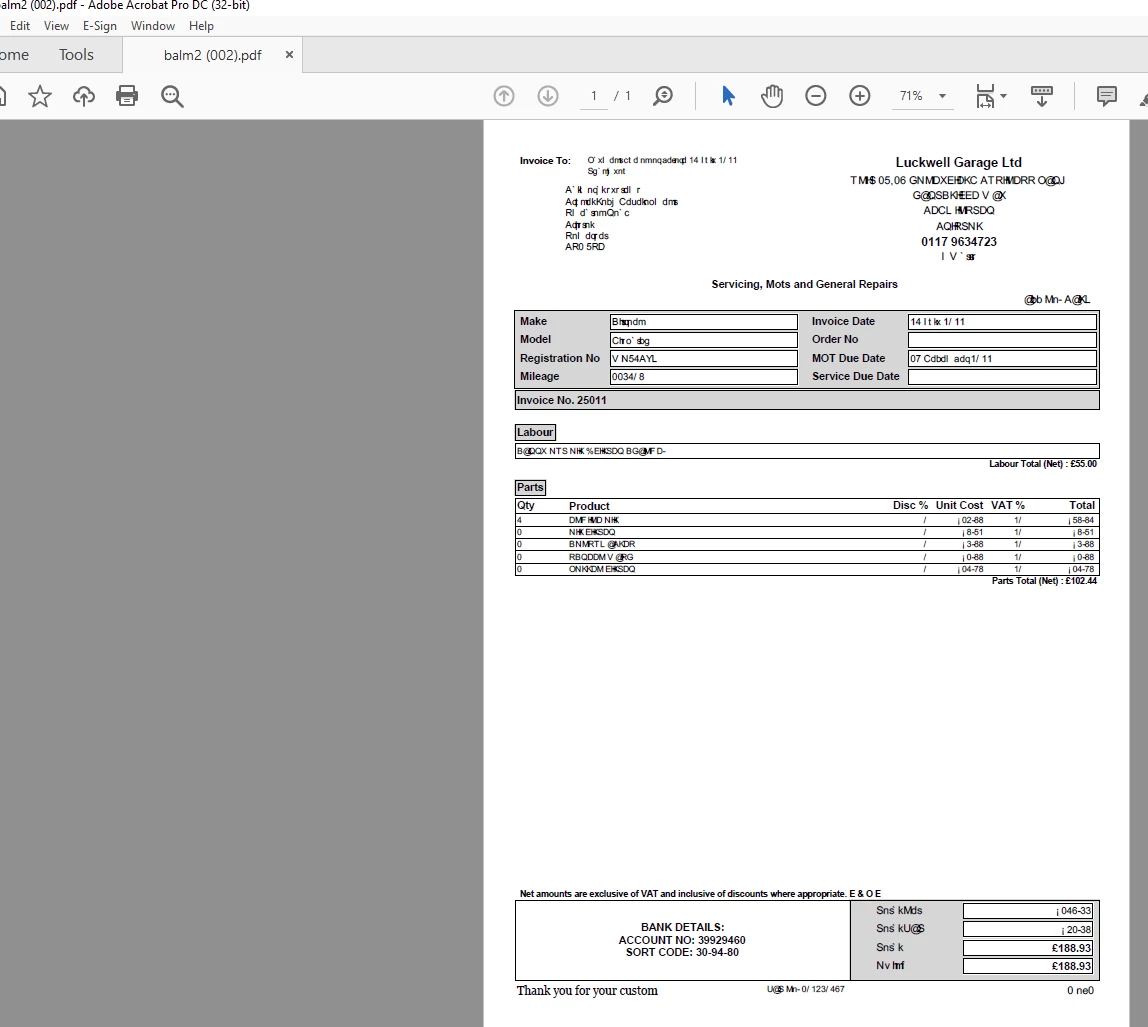 If I export the scrambled PDF to word it reads correctly as a word document. Exporting back to pdf and it reads ok as a pdf.