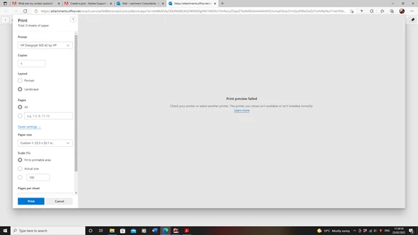 I have checked and updated all programs, software and drivers and this has made no change. The files will print to other printers fine, just wont send the file to print with the plotter. When trying to print from browser, the print preview wont even come up (see attached photo).