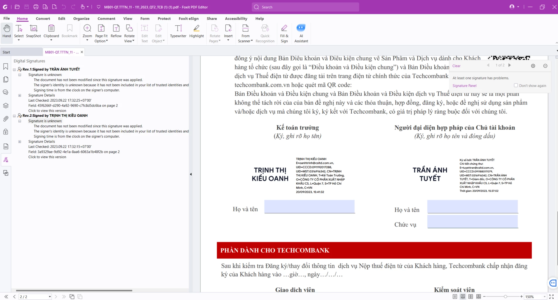 - I also open this file with Foxit Reader, and it all show me that both Signatures are VALID too.