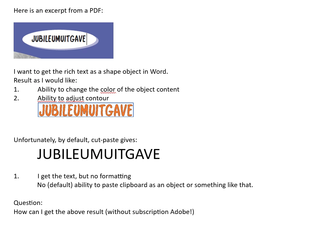 I have a PDF document that includes a text. (I don't have an Adobe subscription!)