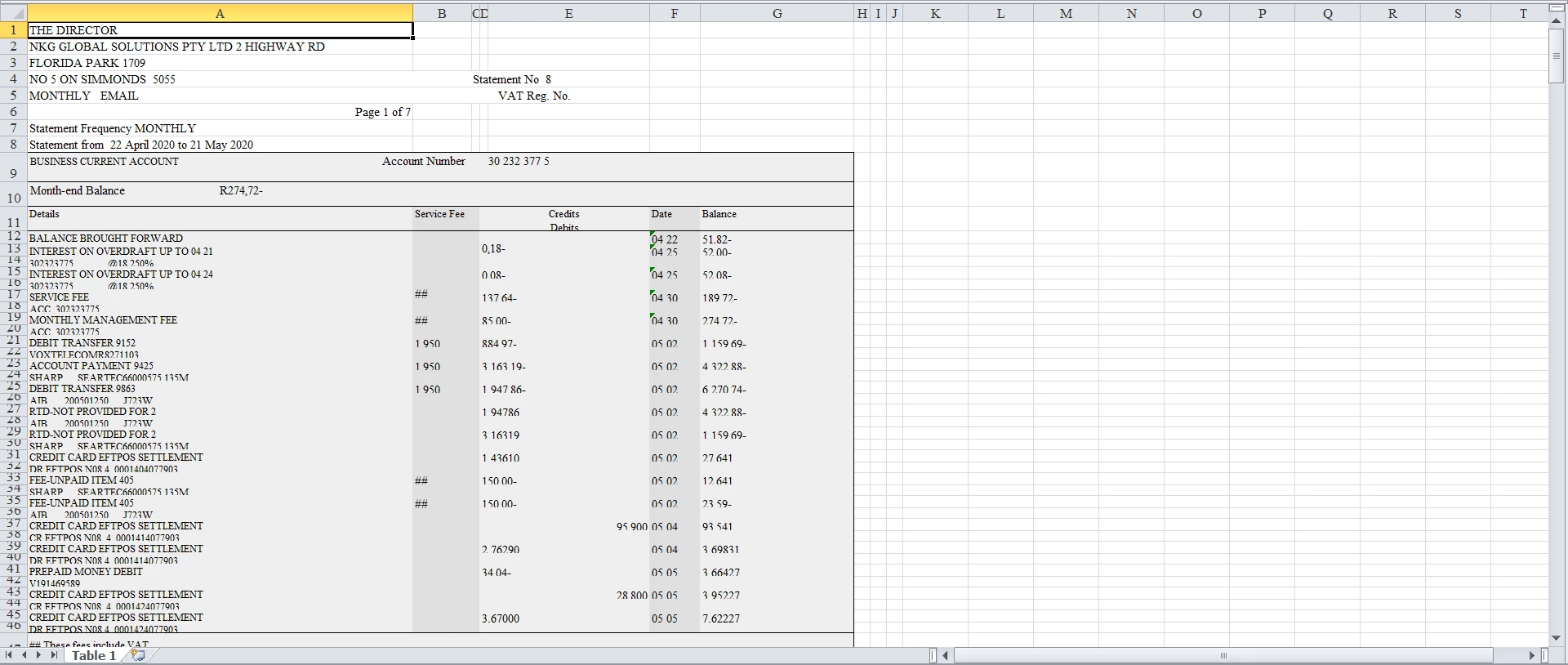 I am not able to conver a PDF document to exel. Please help. A copy of the PDF is attached