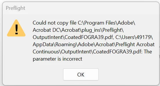 I am trying to convert my PDF format to PDF/A format, but uopn saving, I am getting the error below. Do you have any idea what is the problem?