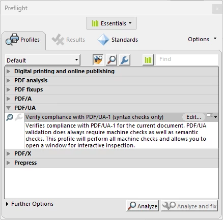 I am using PAC to ensure my document is WCAG 2.1 compliant. One of the last things to do is add the PDF/UA identifier but I only get the syntax checks only and cannot add it. I have already repaired my installation. It does this across all my files.