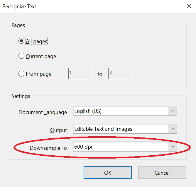 ALL FILES that are PDF must be Text Recognized (OCR) at High Resolution of 300 or 400 DPI