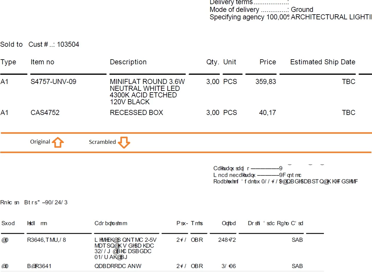 Here's an example of the original and the scrambled PDFs.