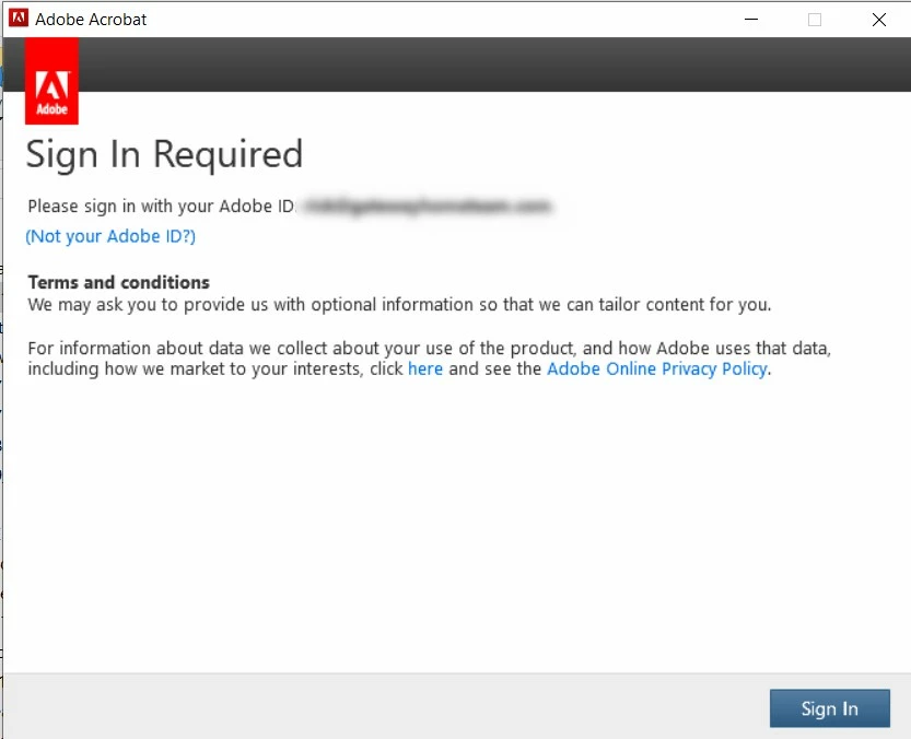 Beginning today, pdf's will not open on my Windows 10 PC. I try to open one, both attachments in emails and pdfs on my computer, but it just prompts me to login. I click ok and it just loops...nothing for a few seconds then the sign in page appears again. I've logged in to Creative Cloud, uninstalled and re-installed the program, restarted my computer a few times but nothing seems to work.