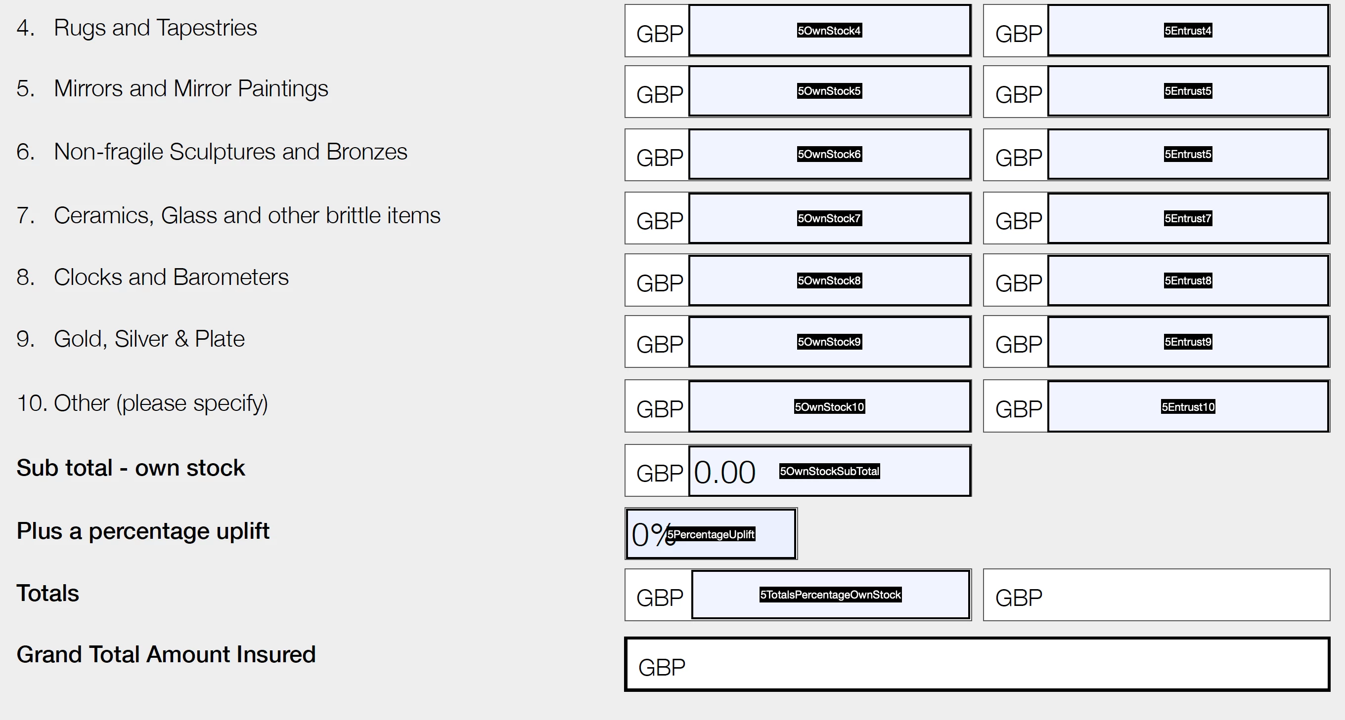 I need to create a calculation so that whatever is entered into the 'percentage uplift' box gets added to the 'subtotal own stock' and gives me a total. Do I need a javascript to do this? Should I keep the percentage uplift field a percentage or a number?