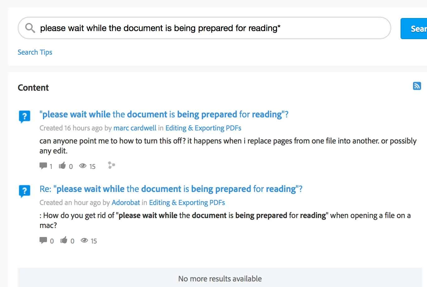 Please wait while the document is being prepared for reading dialogue on Reader DC for Mac
