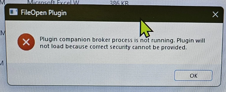 "Plugin companion broker process is not running. Plugin will not load because correct security cannot be provided."