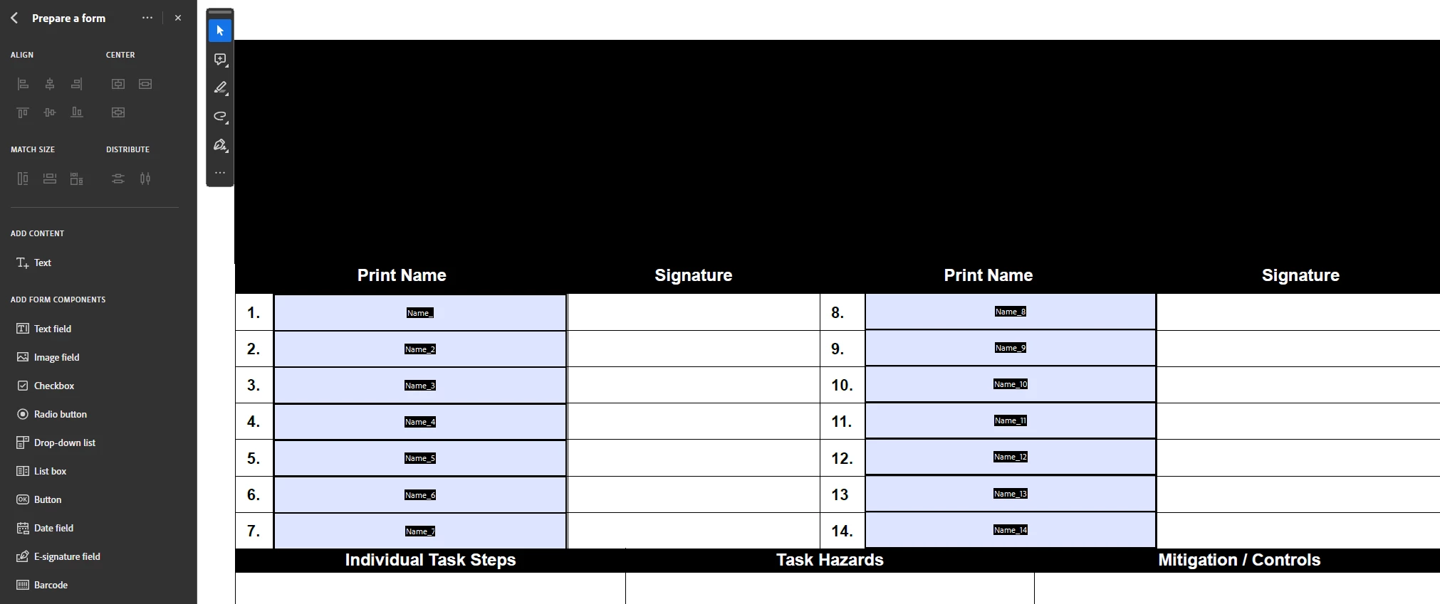 I have a form that is for my team in the field. It's for a safety meeting where several people attend. Each person will print their name and sign next to it. Currently, they are printing it out, filling the form out by hand, signing by hand and then scanning it in. The completed document is then sent to the home office.
