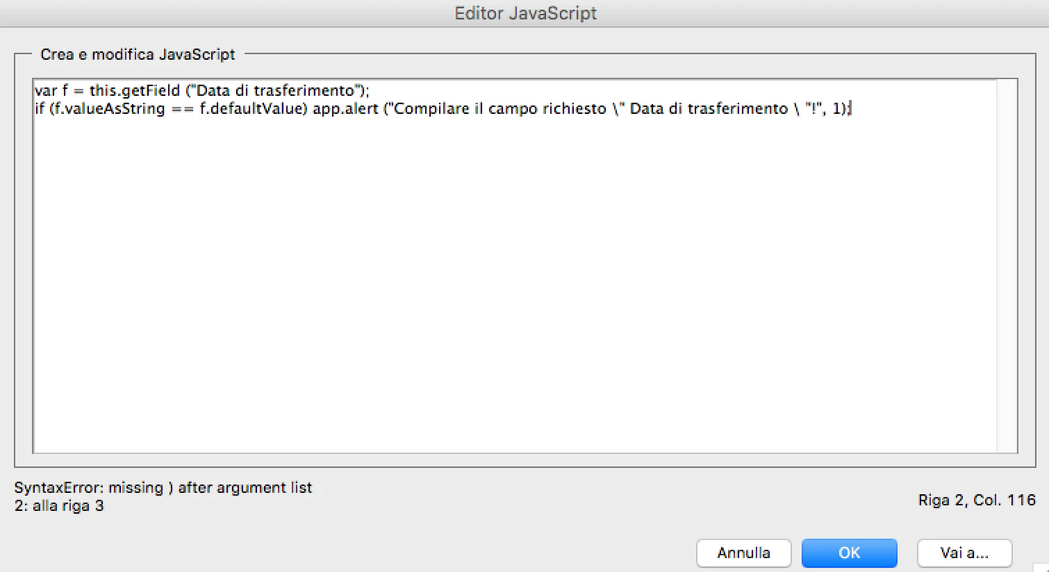 Hi. I need to insert a popup message when a user not to fill out a required text field.