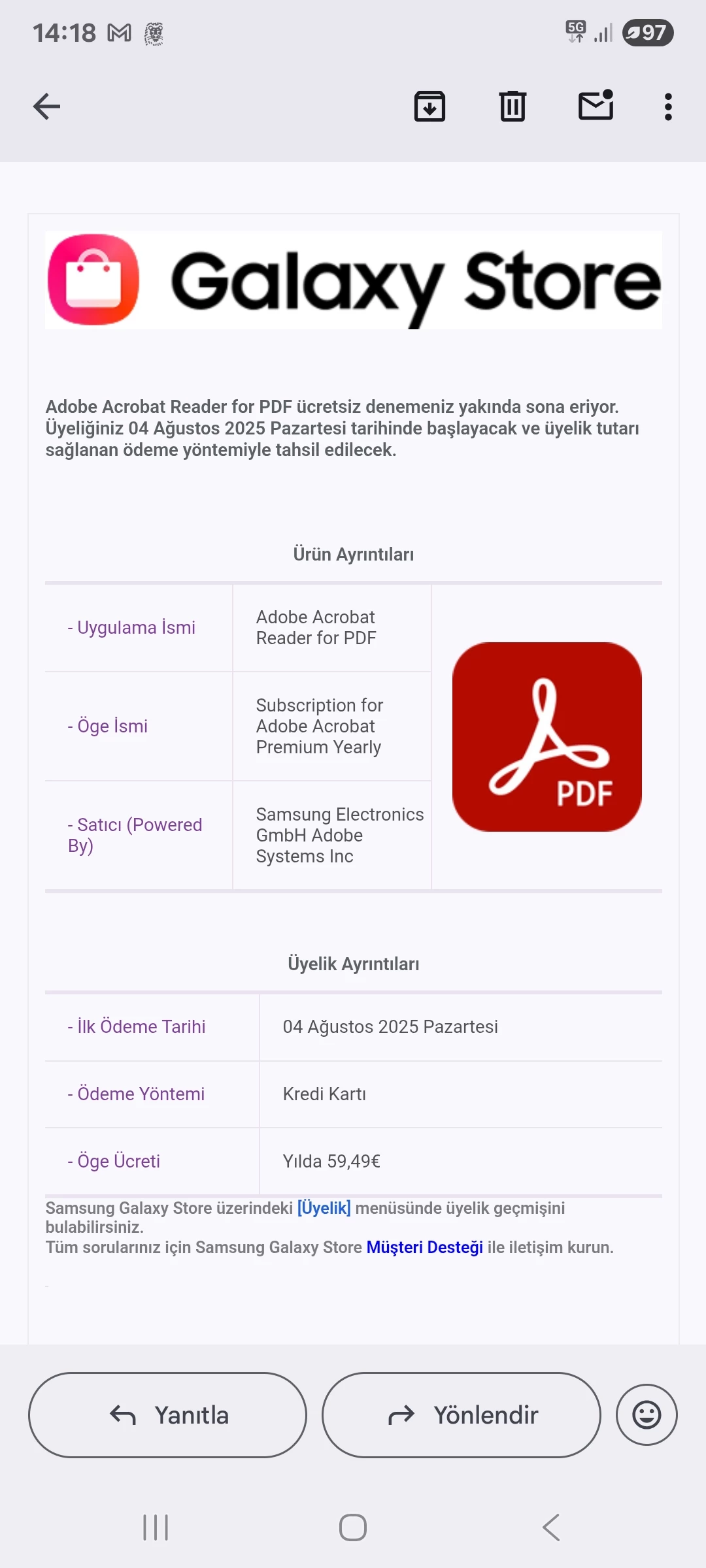 Hello, even though I paid for Acrobat through the Samsung Store, it still lists me as a free user and I can't use it even though I paid for it.