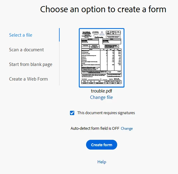 When you click that check-box in the first dialog you're creating an Adobe Sign form. Is this what you're intending to do?