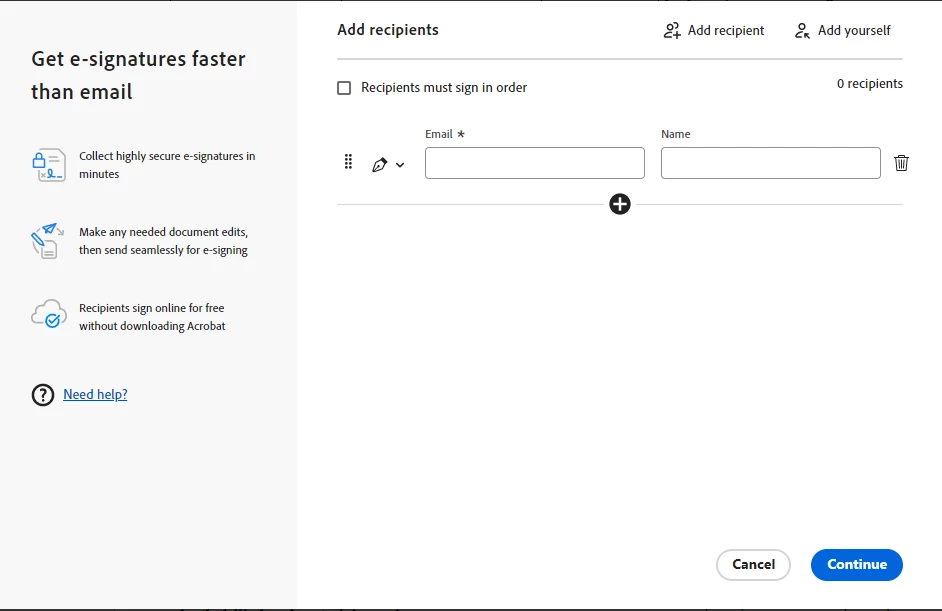 This add recipient change has changed the remaining screens and I have in some cases been completely unable to send a document.